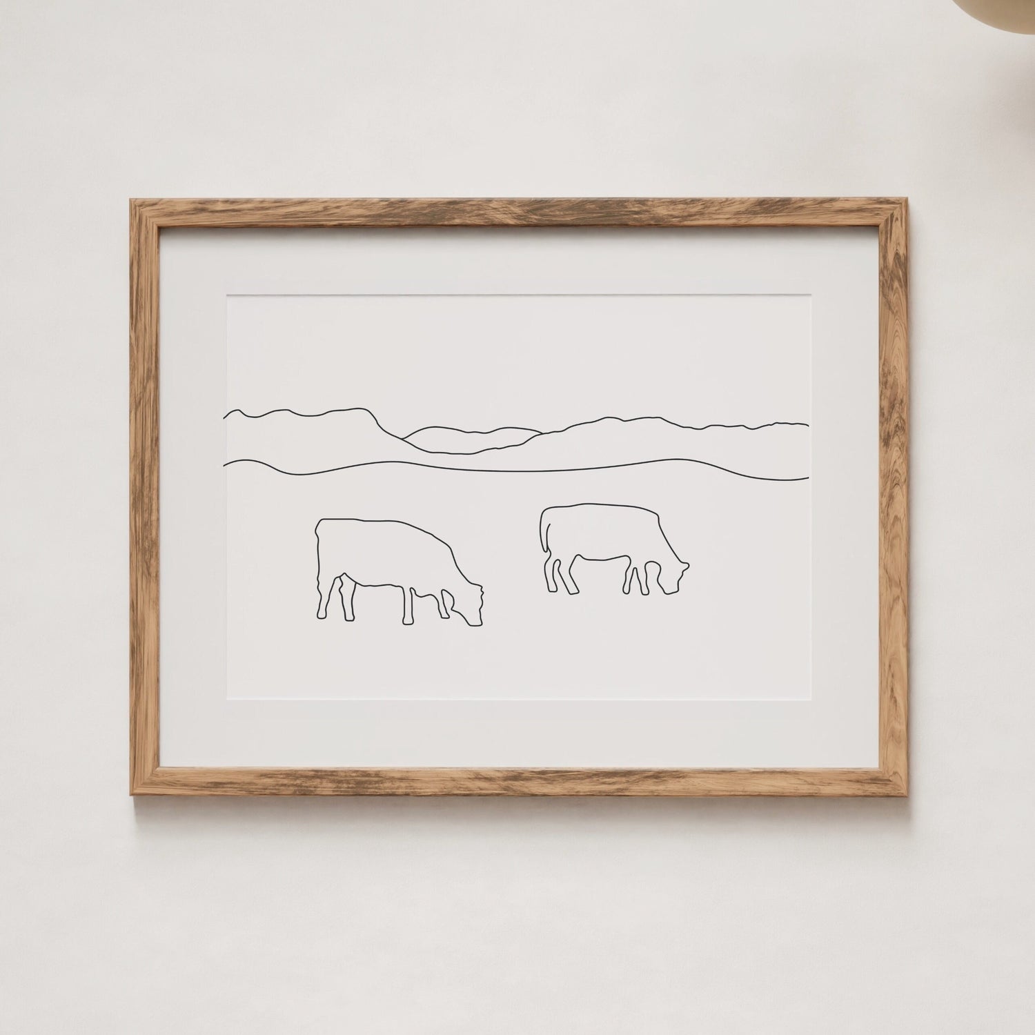 Cow Line Art Print – Minimalist Animal Wall Art (Digital Download)